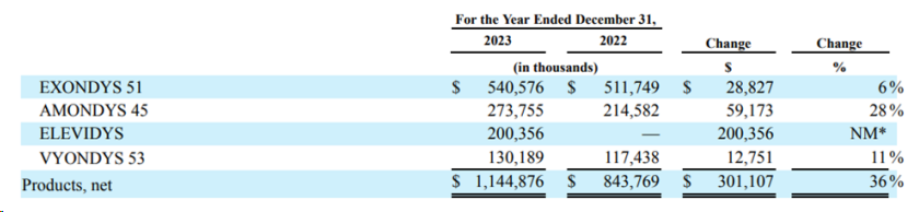 由Sarepta开发的Casimersen(amondys 45)2023年销售额2.7亿美元,同比增长28% ,位列榜单第六位。