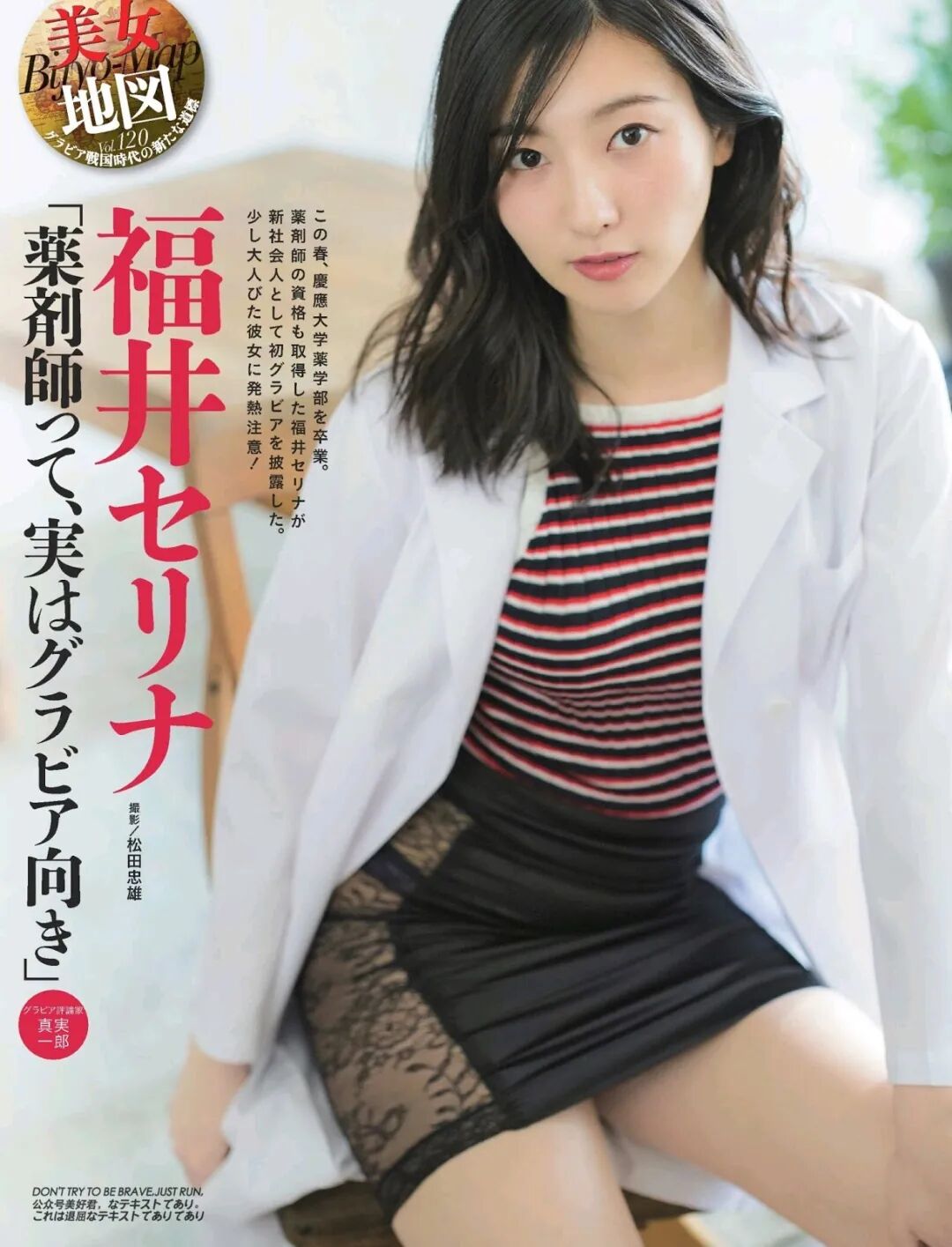 福井セリナ 现在有两份工作,一份是药剂师,每周有两天在银座的药店工作;一份是模特或者说写真女郎,毕竟福井セリナ是一位拥有B87/W61/H89好身材的日本辣妹。