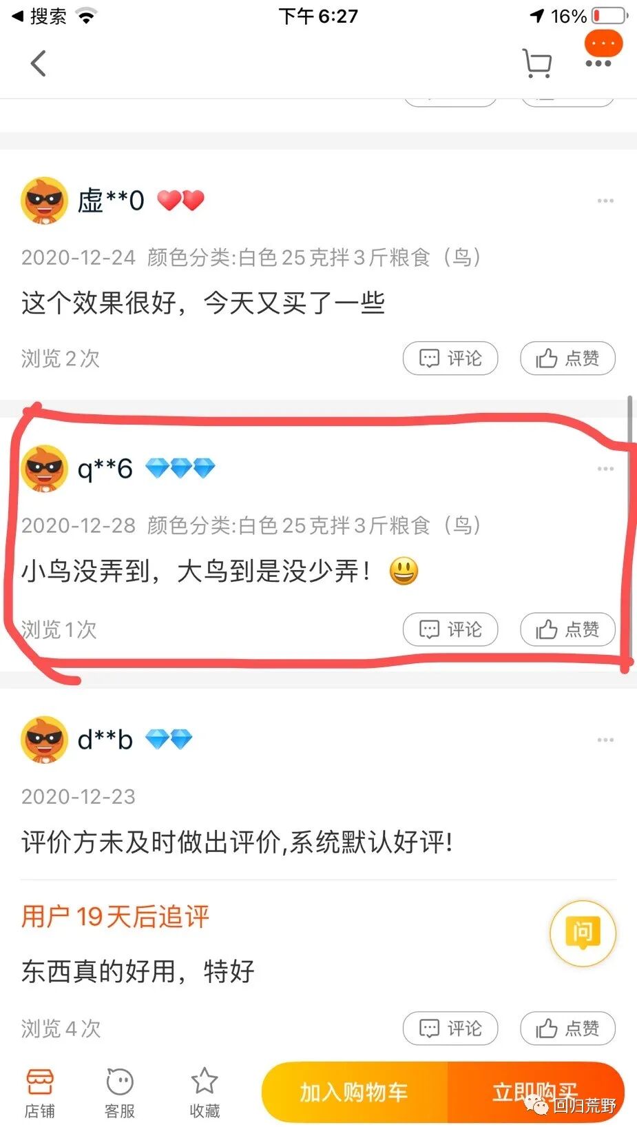 还有很多店家的链接就不一一列出来来,就拿上面的这个链接举一个例子。月销500+,上面两张图是他们这家店的广告和买家的评论,在评论里有说小鸟没弄到,大鸟没少弄