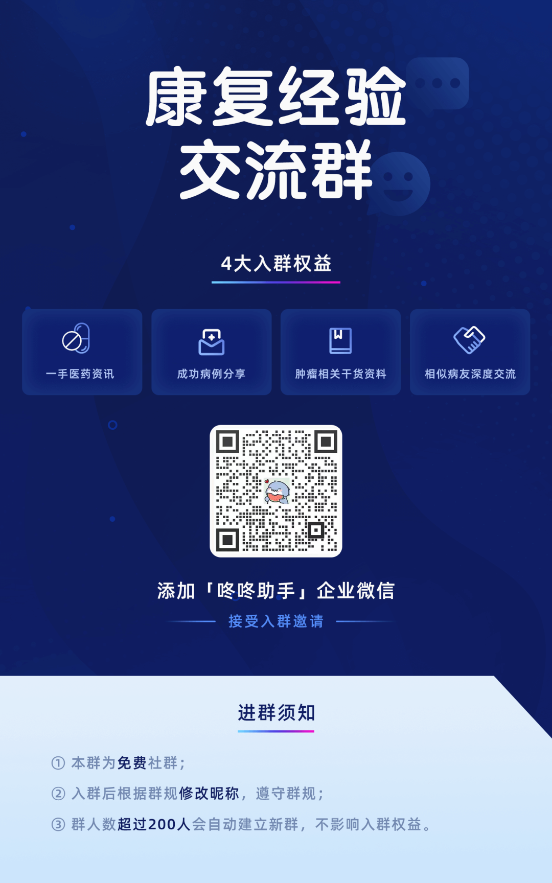 PS.如果你也想了解癌后的康复经验,欢迎扫码加入康复经验交流群,和更多经验丰富的病友们一起讨论~