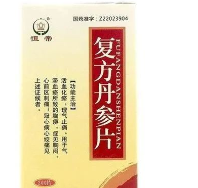丹参具有活血养血,化瘀通脉的功效,由丹参、三七组成。适用于胸闷,胸痛,憋气(冠心病,心绞痛),也用于血瘀型的眩晕头痛,经期腹痛。由于不含冰片,相比于复方丹参片对胃的刺激较小。