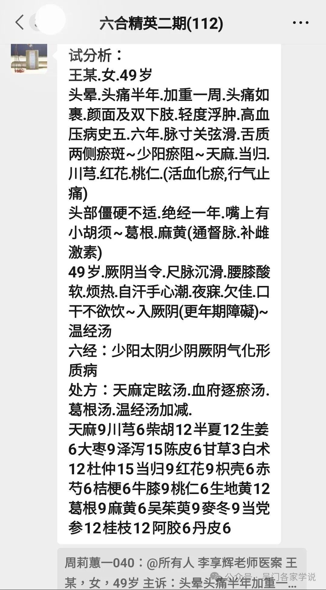 通過這個病例,主要想和大家分享,通过學習太湖学堂《各家学说·活血化瘀》課程後,如何去指導臨牀精準選藥,這一點是非常關鍵的。