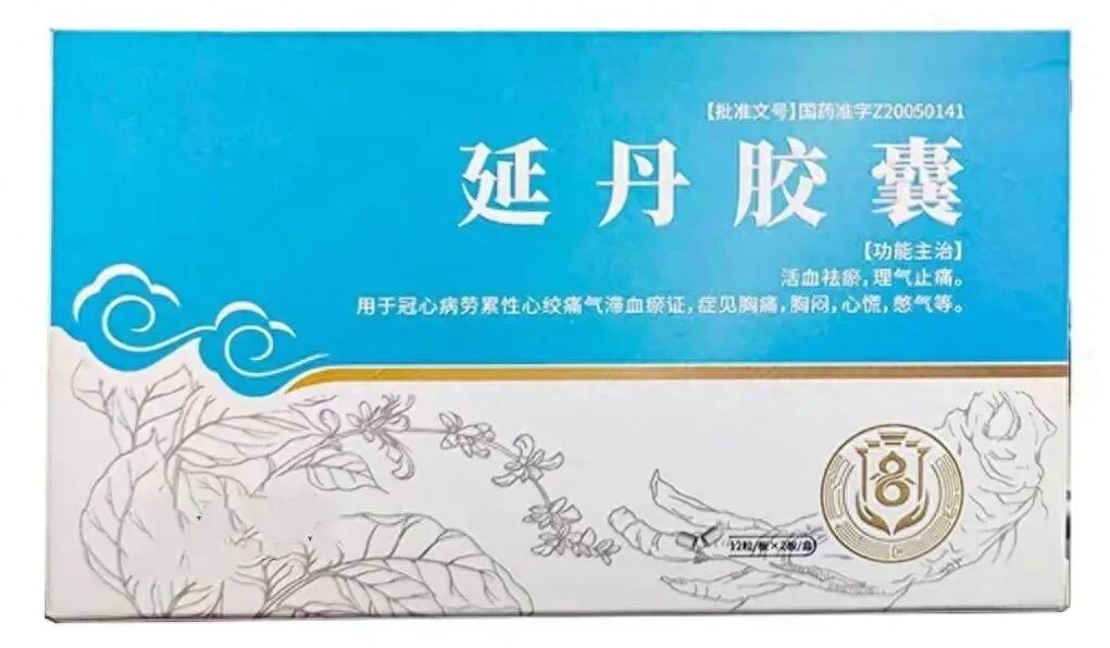 延丹胶囊,由丹参、延胡索、乳香、白芍、瓜蒌、五灵脂、柴胡、枳壳组成。活血祛瘀,理气止痛。用于冠心病劳累性心绞痛气滞血瘀症,症见胸痛,胸闷,心慌,憋气等。