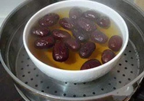 4. 蒸至红枣完全涨开,汤水呈棕色的时候喝。每天可以多喝一些,糖尿病人需要根据医嘱来确定饮用量。