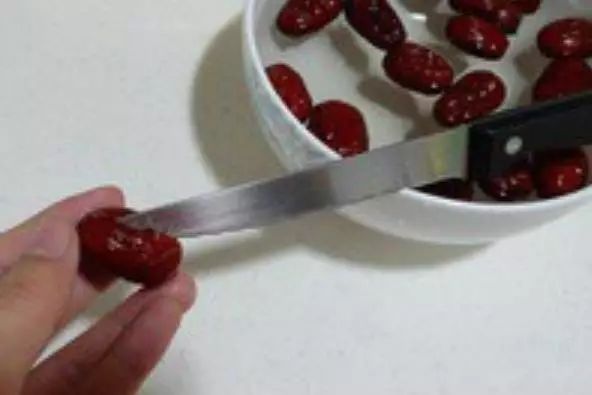 1. 红枣洗净,去除表面浮灰,若时间充裕,可在水中浸泡一晚。
