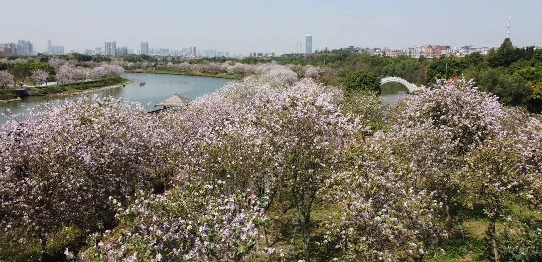 粉粉粉粉粉!广州这片紫荆花海没得像漫画