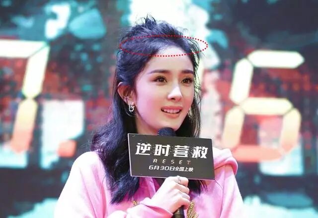 虽然都知道生完孩子都有产后脱发的问题,而且杨幂又是个拼命三郎,发际线后移的问题肯定很严重。