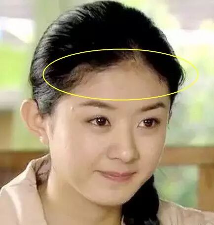 看看以前的赵丽颖,所以发际线太靠前是肯定不行,额头宅显脸圆,还小家子气。