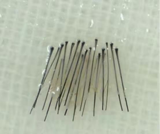 5.几个细节:提取仪的设备内径一般在0.7-1.0的范围内,觉得自己头发特别硬不好采集的,可以跟医生提早沟通好;在种植上有微针和镊子两种操作方式,区别在于扩孔的形状(圆柱状和扁平状);步骤,微针比镊子多一个把毛囊积压进针筒的流程,除此以外,在部分区域微针无法顺利种植的情况下,还是需要宝石刀的介入,这里就根据个人喜好进行选择,没有孰优孰劣