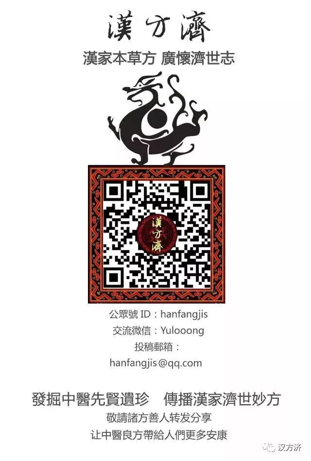 【本文章源于网络,由汉方济整理发布,仅为学习交流和普及中医知识,本账号内所有内容,不作为处方。文章内容仅供专业人士参考,非专业人士,请在当地专业医师的指导下辩证,一切后果与本账号无关】