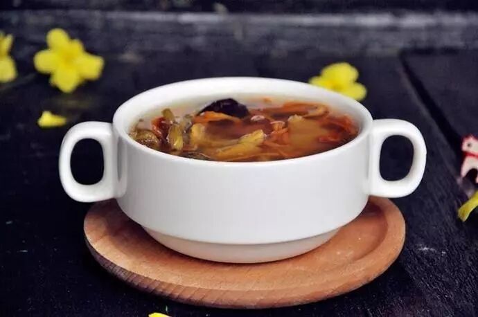 功效:鲍鱼能滋阴益肾、平肝潜阳、镇静安神;麦冬养阴润肺;龙眼肉补益心脾、养血安神;甘蔗生津润燥、清热利尿。此汤对于五脏体虚、劳热咳嗽、心烦失眠、头晕目眩者均宜。