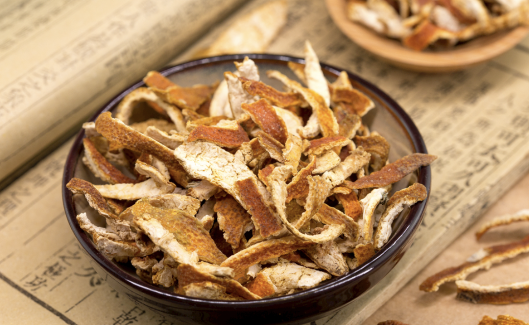 经现代药理学研究发现,陈皮主要含黄酮类成分,如橙皮苷、川陈皮素,橘皮素等,还含有辛弗林和挥发油。其确有理气健脾、燥湿化痰平喘作用,常用于胸脘胀满、嗳气呕吐、食欲不振、咳嗽痰多。陈化三年以上的陈皮中,黄酮类有效成分含量随着年份的增加而递增,从而使药效更佳。