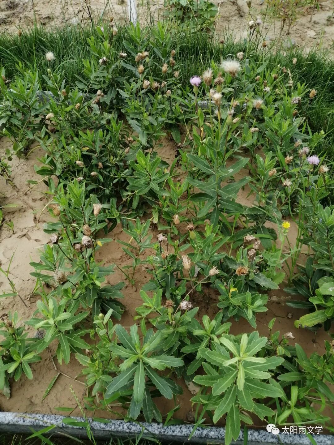 看着这里的一草一药,思绪牵着我回到童年时代,上世纪六七十年代,我们农村还是一个缺医少药的地方,生长在田边地头的中草药成了人们疗伤治病的宝物。大约在我6、7岁的时候,夏忙收麦,打下来的麦粒要进行晾晒,那一天我家晾晒新麦粒,我也像小大人一样帮忙把麦粒摊开。晾晒好麦粒,因为怕有小鸟来吃食麦粒,母亲让我负责看护并要隔时多次翻动麦粒。麦粒在阳光下暴晒着,为了让麦粒能均匀地晾晒,我顶着白花花的太阳,一次又一次的去翻晒麦粒,太阳越来越烈,天越来越热,我躲在树荫下,把盛麦子的布口袋铺在地上,我睡在口袋上面看树叶摇动听夏蝉奏鸣,不知不觉我在树荫下睡着了。醒来的时候,我觉得浑身发痒,一看腿和胳膊上起满了大大小小的扁皮疙瘩,因为太痒,我用手去挠,谁知道越挠越多,凡是手指挠过的地方会有更大的扁皮疙瘩起来,我一看心里很害怕,就哭着跑回家让母亲看,母亲一看着急地说:这是染上麦毒了,新麦子毒气大。后来才知道就是荨麻疹。家里没有治疗的药,我家里当时的公社医院又远,情急之下母亲想起流传在百姓中的一种民间偏方。母亲去有栽种桃树的邻家,撸来了一筐鲜桃叶,洗净沥水用石臼捣碎,取出来涂抹在我身上,我感到一阵清凉,慢慢的也不再那么痒了,经过一天几次地涂抹,我身上的扁皮疙瘩渐渐消去。