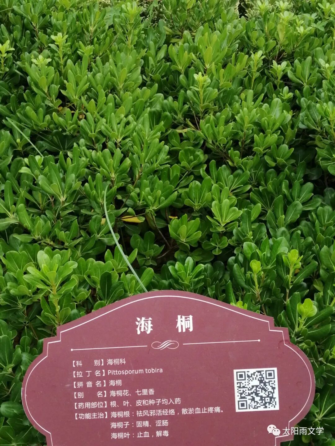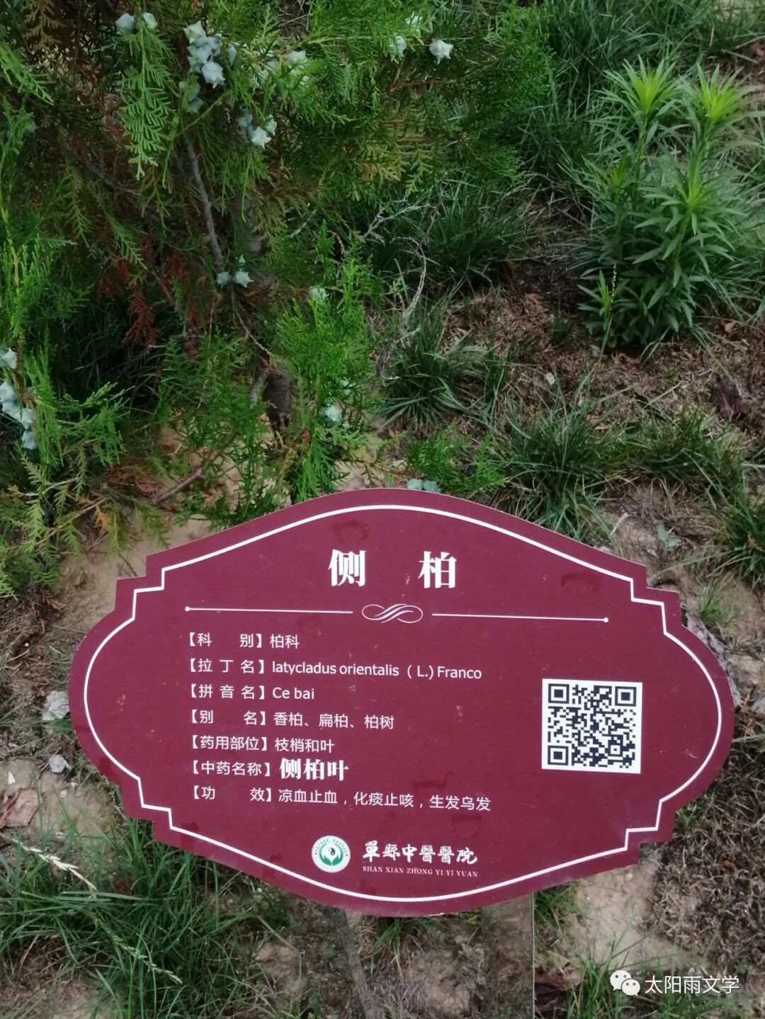 在这个中医药文化园里,最吸引我的是各种中草药,我一边观看一边记录:牛筋草、美人蕉、车前子、栝楼、牡丹、芍药、茅根、苦菜、薊藜、兔丝子、玉簪、鸢尾、萱草、木芙蓉、红花酢浆草等草本药材葳蕤生辉;银杏、山楂、麦冬、女贞、七叶树、黄栌、紫丁香、红豆杉、紫荆、山茶、白玉兰、合欢、皂荚、红枫,无花果等木本植物叶绿花红。这里的一草一木都吐露着中草药的芳香,这里的一叶一花都闪耀着中医的精华。每一棵中草药都有不同的功效与用途,每一味中药都彰显着中药的精髓和神奇。它们就是平凡的一草一木,却护佑着人们的安康与未来。