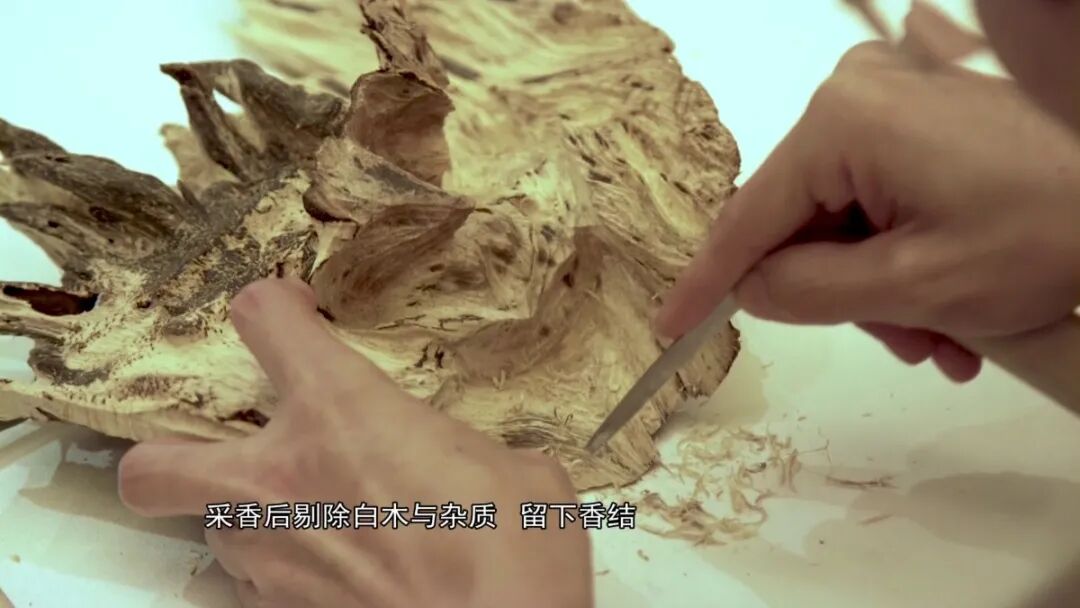 莞香制作技艺最主要的特征,用天人合香作为一个主题。就是以人力促使香树进行结香这样的一个过程,进行断根、开香门等等的劳动实践,是总结出来的一种技艺。我们从小雪开始一直到1月份都是采集的时间,一般为期两个半月。