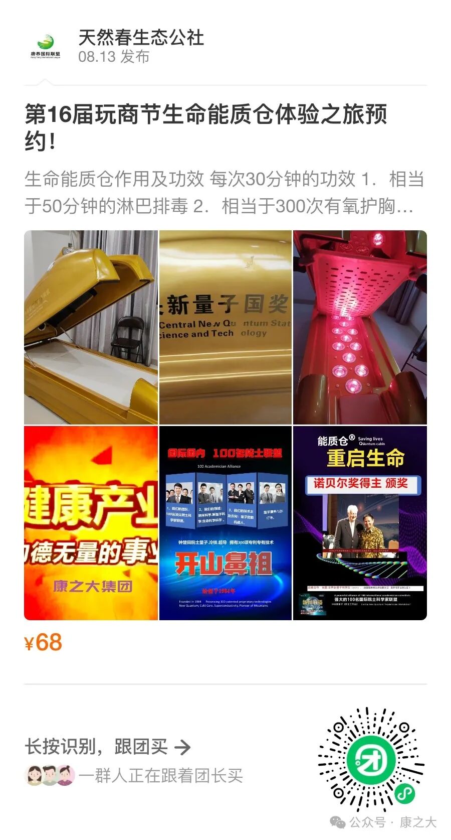 康之大·百岁计划:世界顶尖科研生命能质仓,守护您和家人健康!(点击查看)