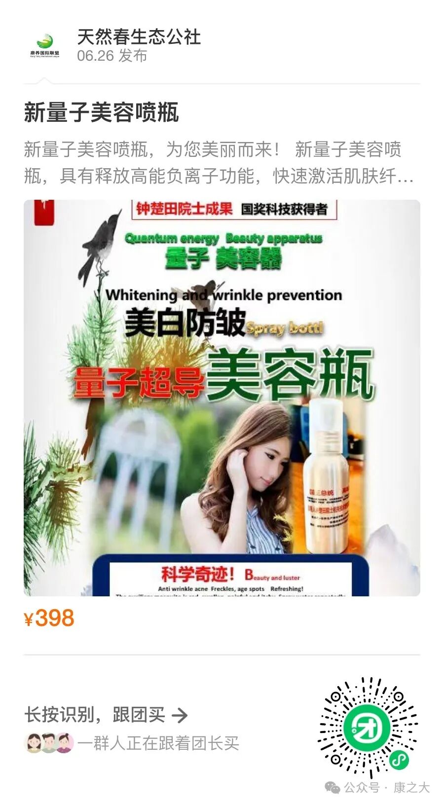 关注康之大公众号+视频号