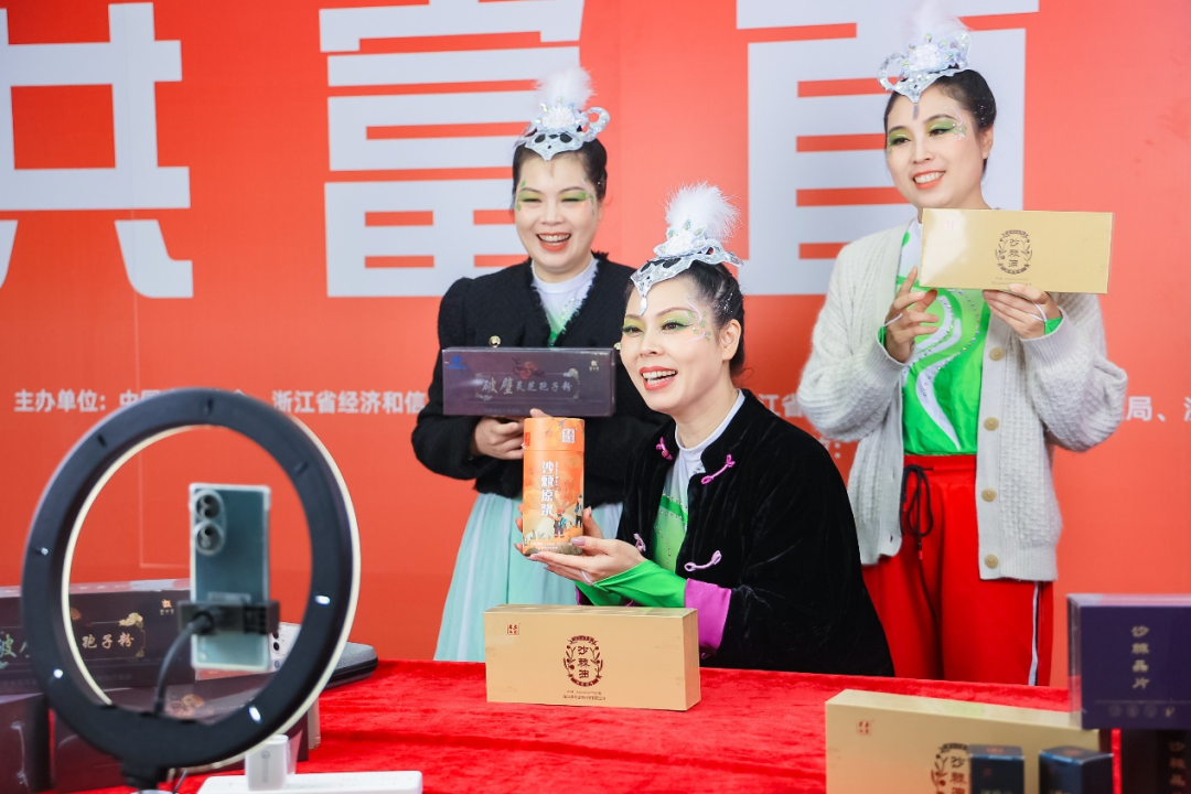 这里是共富公益直播间,我们是在药博会现场直播……11月10日,浙八味药材城一楼中央广场的共富直播间开播,主播化身药材专家,向网友介绍推荐磐安的优质中药材。四周的商户,门庭若市,为期多日的促销活动吸引着参观者买买买。
