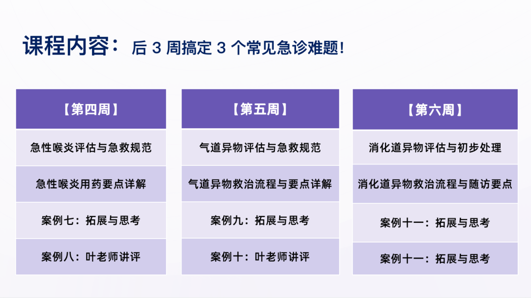 总结最新指南共识及 20 年门急诊经验,通过 6 周精讲精练,让你搞定门急诊 6 大难!