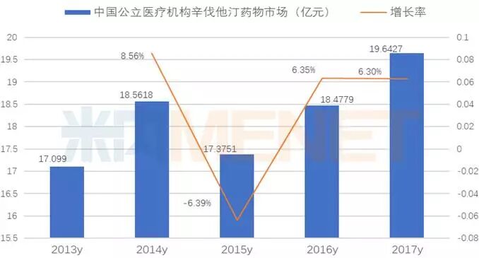 据米内网数据显示,2017年中国公立医疗机构辛伐他汀制剂终端销售额达到了19.64亿元,同比上一年增长了6.30%。其中,辛伐他汀片占4.61%,分散片占2.65%,胶囊剂占0.99%。