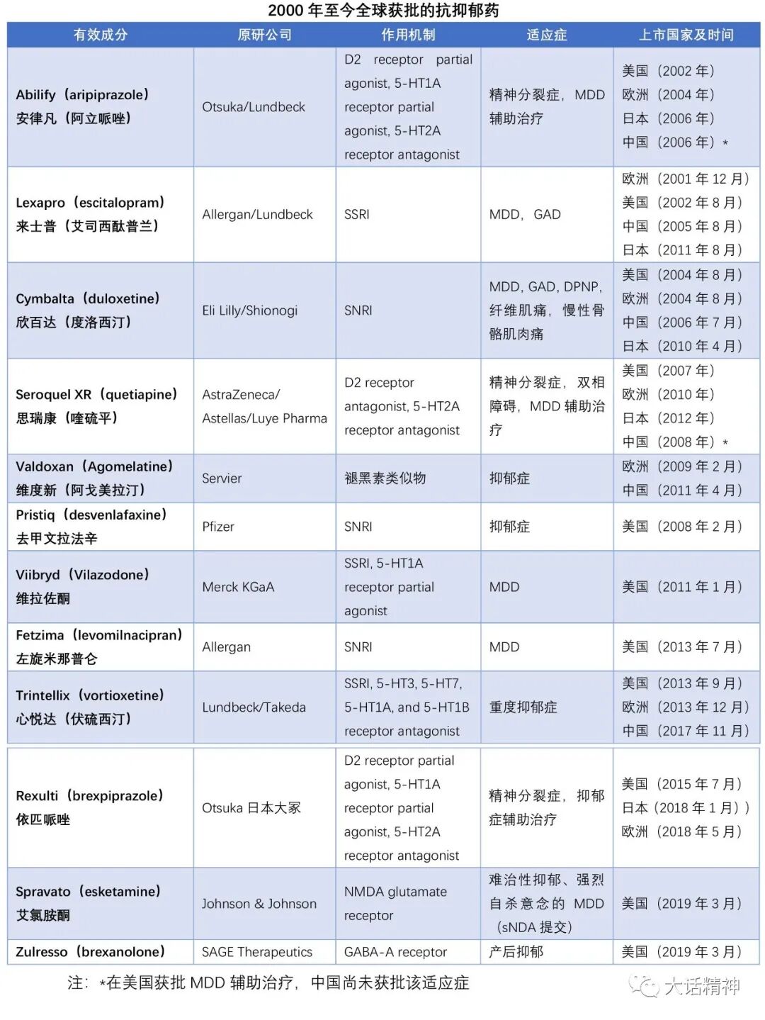 以上,对目前临床常用的各类抗抑郁药的药理作用及适应证进行了归纳解析,小结如下: