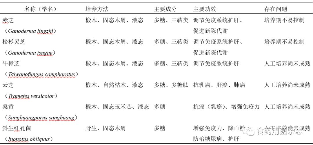 表1市面上常见的药用真菌的主要功效及存在问题