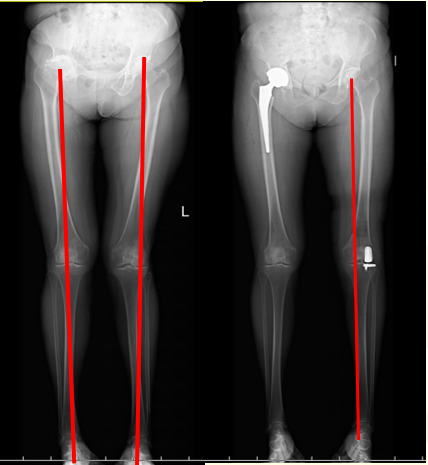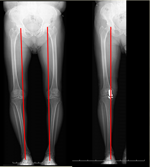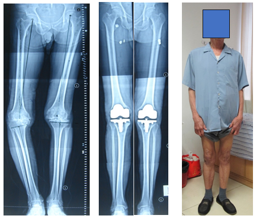 图1:该患者为左侧膝骨关节炎晚期,膝关节内翻畸形