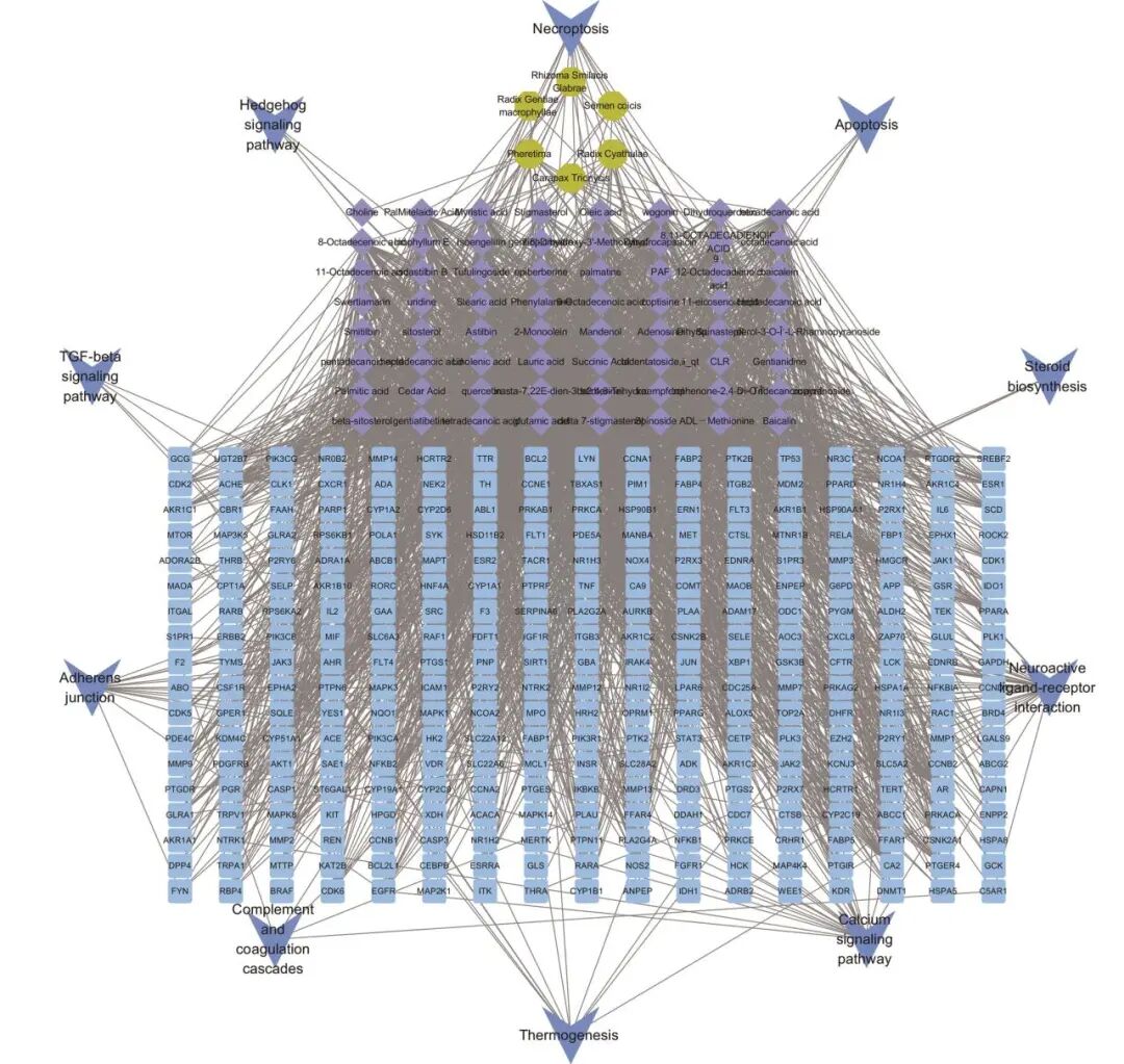 图8 药物-成分-基因-信号通路网络