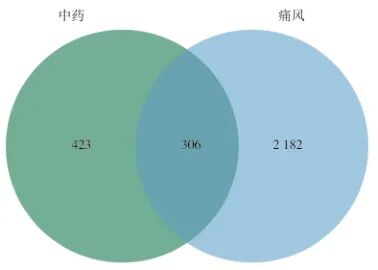 通过人类基因综合数据库(GeneCards,https://www.genecards.org/)[17]、药物靶标数据库(TTD,http://db.idrblab.net/ttd)[18]、DisGeNET数据库(https://www.disgenet.org/)[19]、人类孟德尔遗传数据库(OMIM,https://omim.org/)[20]以及药物遗传学和药物基因组学知识库(PharmGKB,https://www.pharmgkb.org/)[21]检索与痛风相关的疾病基因,限定物种为人类。