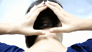 双手并放在额头上,用指腹在眉心中线开始按摩。眉心-额头中线-头顶中线-百会穴10次-风池穴10次。