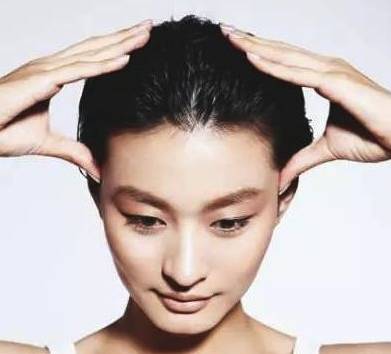 用指腹,从后脑枕骨开始,向上螺旋按摩头皮,渐渐向上,按摩整个头皮部分。