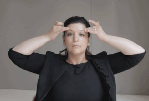 用双手指腹,从眉心中线开始向两侧按摩,一直到太阳穴,一共来回按摩6次。