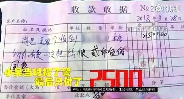 可令人意外的是,说好的免费在结账时变成了三万九,小吴一下就慌了,认为对方这就是欺骗消费者,立马报了警,最终以2500元的价格了结了此事。