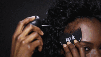 Step2.选择一款与发色相近的眼影,反复在发根处刷,再用化妆棉或者是刷子向外晕染,使眼色与发根衔接自然。