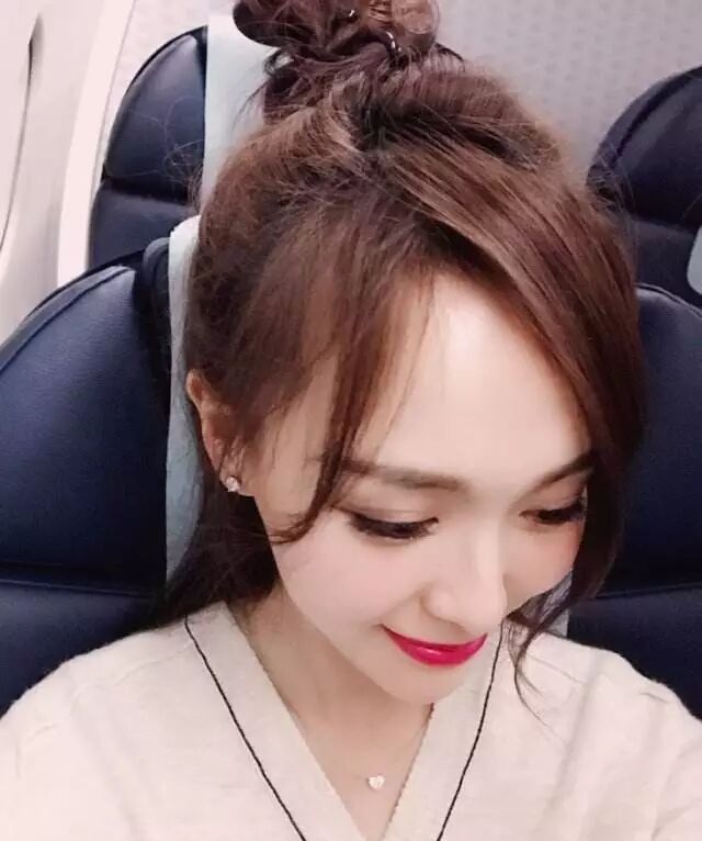 宋茜也是有名的高额头呢,在F(x)的时候曾尝试过平刘海,走的是元气少女风;直到最近开始改走轻熟性感路线,频频以斜刘海形象示人,也是非常明艳动人呢~