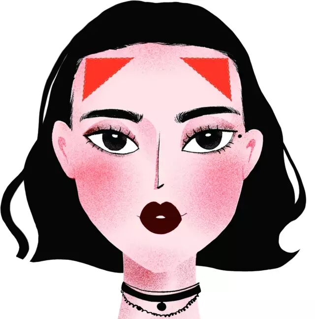 这一类发际线不完美的情况通常会出现在方脸或者倒三角脸型上。从视觉上来看,脸会显得比较宽、大。
