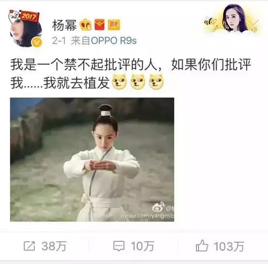 连wuli大幂幂都感受到了这波发际线的来势凶猛,于是开始机智反击,说要去植发啦!
