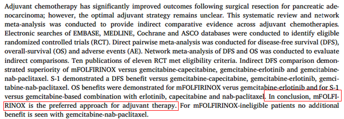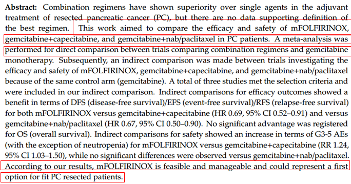 这项Meta分析也得出了mFOLFIRINOX方案应该作为优先的方案