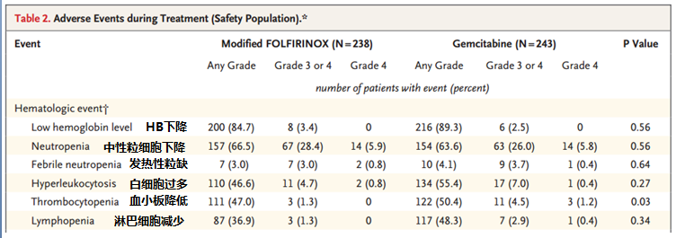 个人使用mFOLFORINOX方案经验不算太多,因为总体来说反应比较大,从这个临床研究来看,3-4级血液学毒性发生率基本差不多