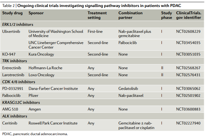 Nevala-Plagemann C, Hidalgo M, Garrido-Laguna I.From state-of-the-art treatments to novel therapies for advanced-stage pancreatic cancer. Nat Rev Clin Oncol. 2019 Nov 8. doi: 10.1038/s41571-019-0281-6. [Epub ahead of print]