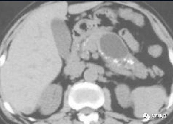 ④近端胰管及胆管的改变。不规则的胰管扩张或呈串珠状改变以炎性狭窄可能性大,CT还可见沿主胰管走行的钙化。而相对光滑均匀的扩张提示胰头癌恶性梗阻的可能性大。