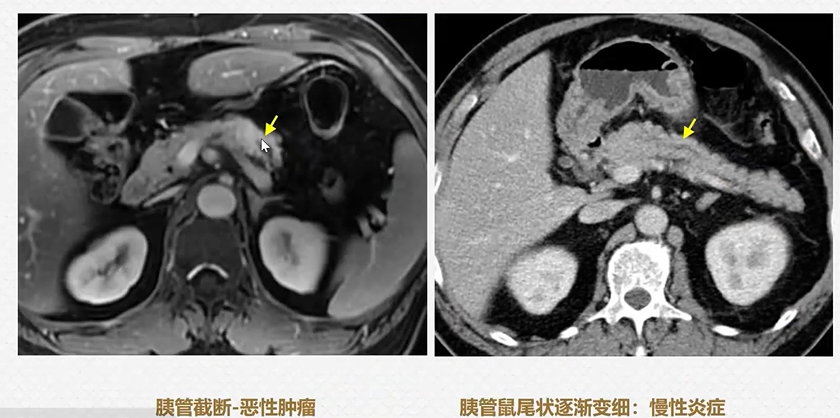 图15 胰管截断征与鼠尾征对比