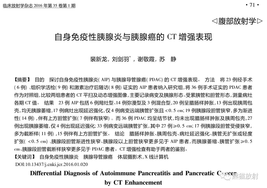 自身免疫性胰腺炎与胰腺癌丨CT鉴别诊断