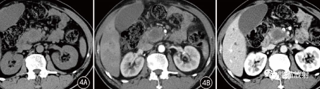 对于局灶型AIP病灶,与 PDAC病灶鉴别可能较困难。前者平扫均表现为略低密度,增强扫描后出现延迟强化, 强化密度均匀,可伴有胰周包壳,且胰腺萎缩不明显。