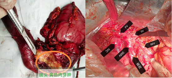 2020.12.08陈徐艰主任医师带领他的医疗组,给患者实施胰十二指肠切除术,术中所见正如术前想象的样子,胰头及周围组织明显水肿,肿块与周围脏器组织致密黏连,如同肿瘤侵犯,但并未见到腹腔其他部位明显肿瘤转移迹象;手术的难点集中在分离肿块与下腔静脉黏连、肿块与肠系膜上静脉黏连、十二指肠韧带内部黏连。陈主任采用小步慢跑钝性分离,小心翼翼,逐一成功拆弹,切除的标本没有看见明显肿瘤细胞,病理医生凭借多年经验考虑黄色肉芽肿性胰腺炎,伴有胆总管及胰管上皮异性增生。没错,是一个良性疾病伴有癌前病变,家属拿到报告万分欢喜!