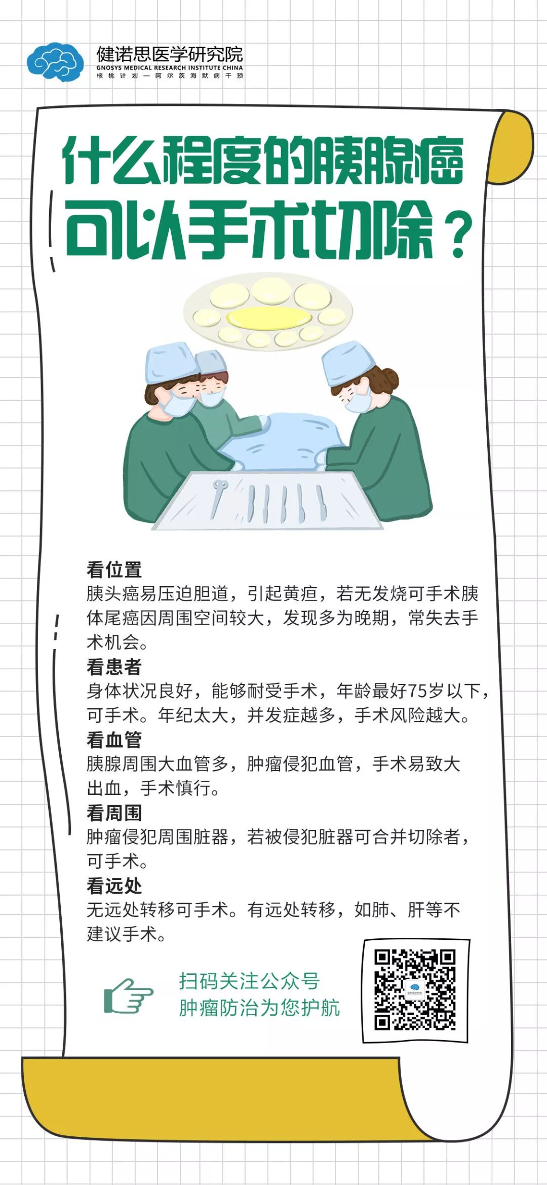 临床研究显示,大约只有20%的胰腺癌有手术治愈的机会,因此肿瘤能否做手术切除是胰腺癌确诊后重要的评估项目,也是所有患者都急切想要知道的。
