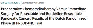5. Versteijne E., Suker M., Groothuis K. et al., Preoperative Chemoradiotherapy Versus Immediate Surgery for Resectable and Borderline Resectable Pancreatic Cancer: Results of the Dutch Randomized Phase III PREOPANC Trial. J Clin Oncol 2020, O1902274.