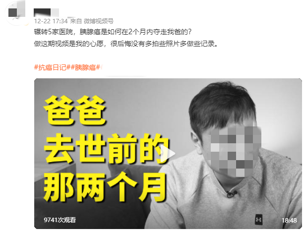 有网友分享过自己父亲患胰腺癌的经历,从确诊到死亡只用了不到2个月时间。