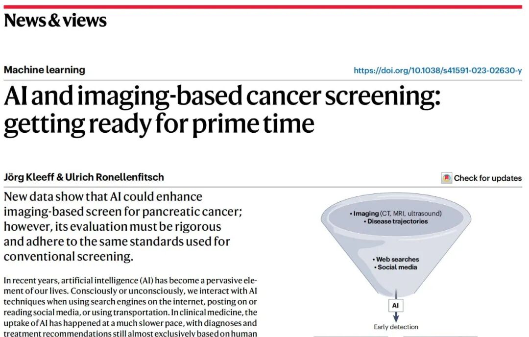 这或许是人类在与「癌症之王」胰腺癌的斗争中第一次掌握了主动权。《自然医学》对此还专门刊发评论文章:「基于医疗影像 AI 的癌症筛查即将进入黄金时代」。