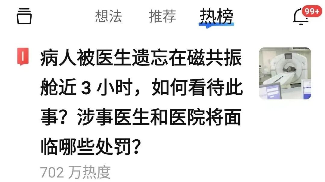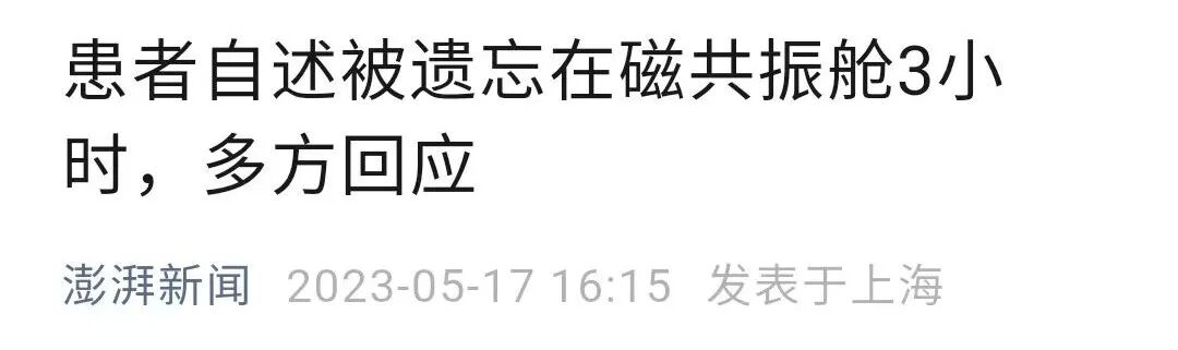 医生将病人遗忘在核磁舱近3小时,
